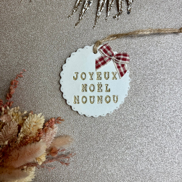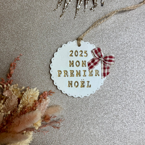 Médaillon en argile auto durcissante décoré d’un noeud placé en haut à droite.