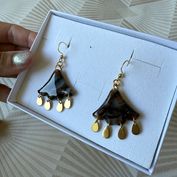 Jolie paire de boucles d'oreilles avec petites pampilles dorées. Chaque paire est différente car est issue de plusieurs mélanges de couleurs.